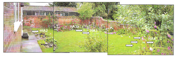 Panoramic view of rear garden. Plans suggest a cylindrical brick built chamber for pumping gas was located in the area now used by the wooden warehouse on the northern side of the brick wall. |